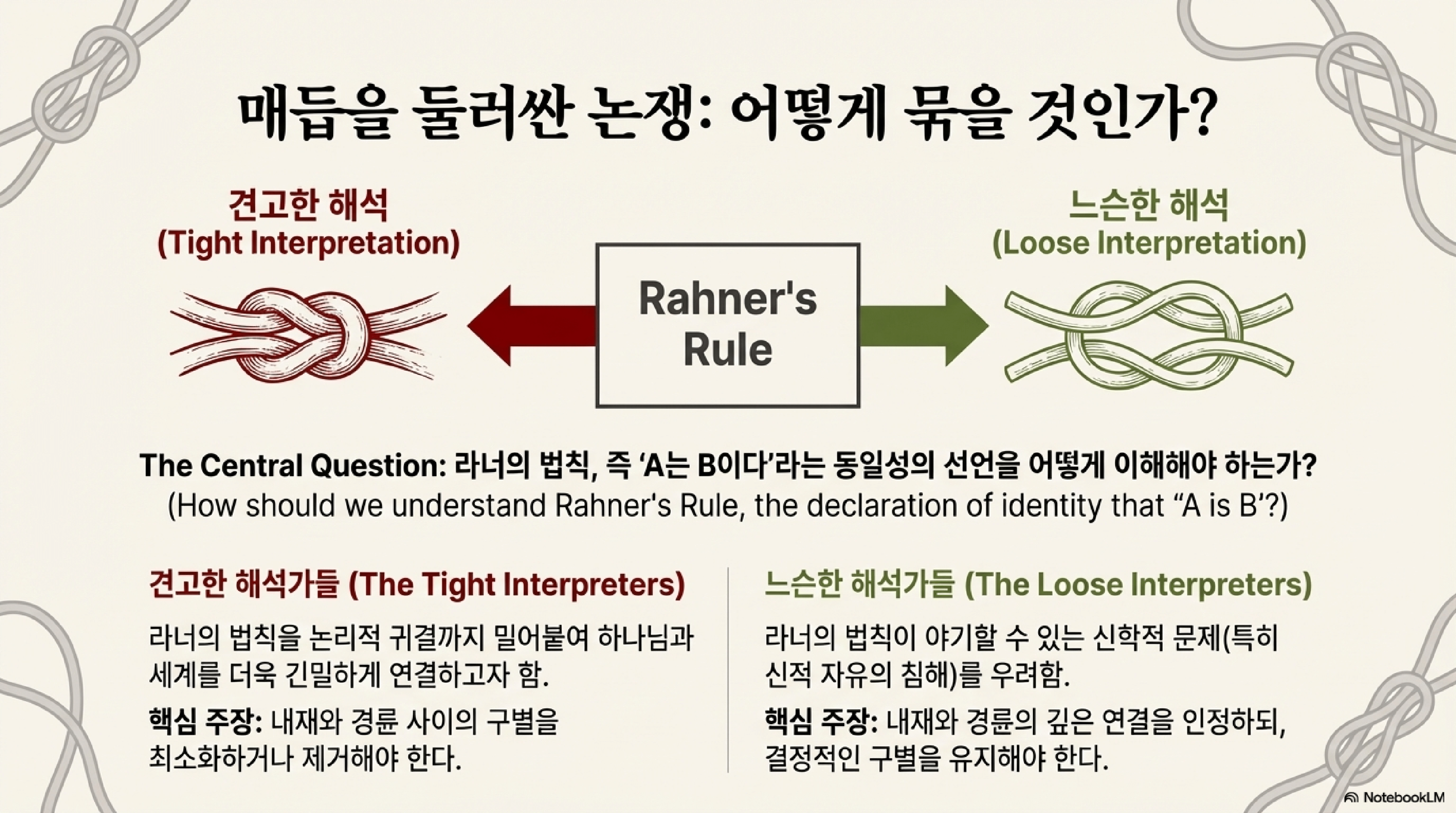 이 선언은 '라너의 원칙(Rahner's Rule)'으로 불리며, 현대 삼위일체론 논쟁의 중심축이 되었다. 이 원칙의 목적은 아들의 성육신이나 성령의 강림과 같은 구원 역사의 사건들을 하나님 자신의 영원한 본질과 직접적으로 연결함으로써, 삼위일체 교리를 추상적 사변이 아닌 구체적이고 실존적인 신앙의 문제로 되돌리려는 것이었다. 그러나 이 "이다(is)"의 의미를 어떻게 해석할 것인지를 두고 신학계는 양분되었다.