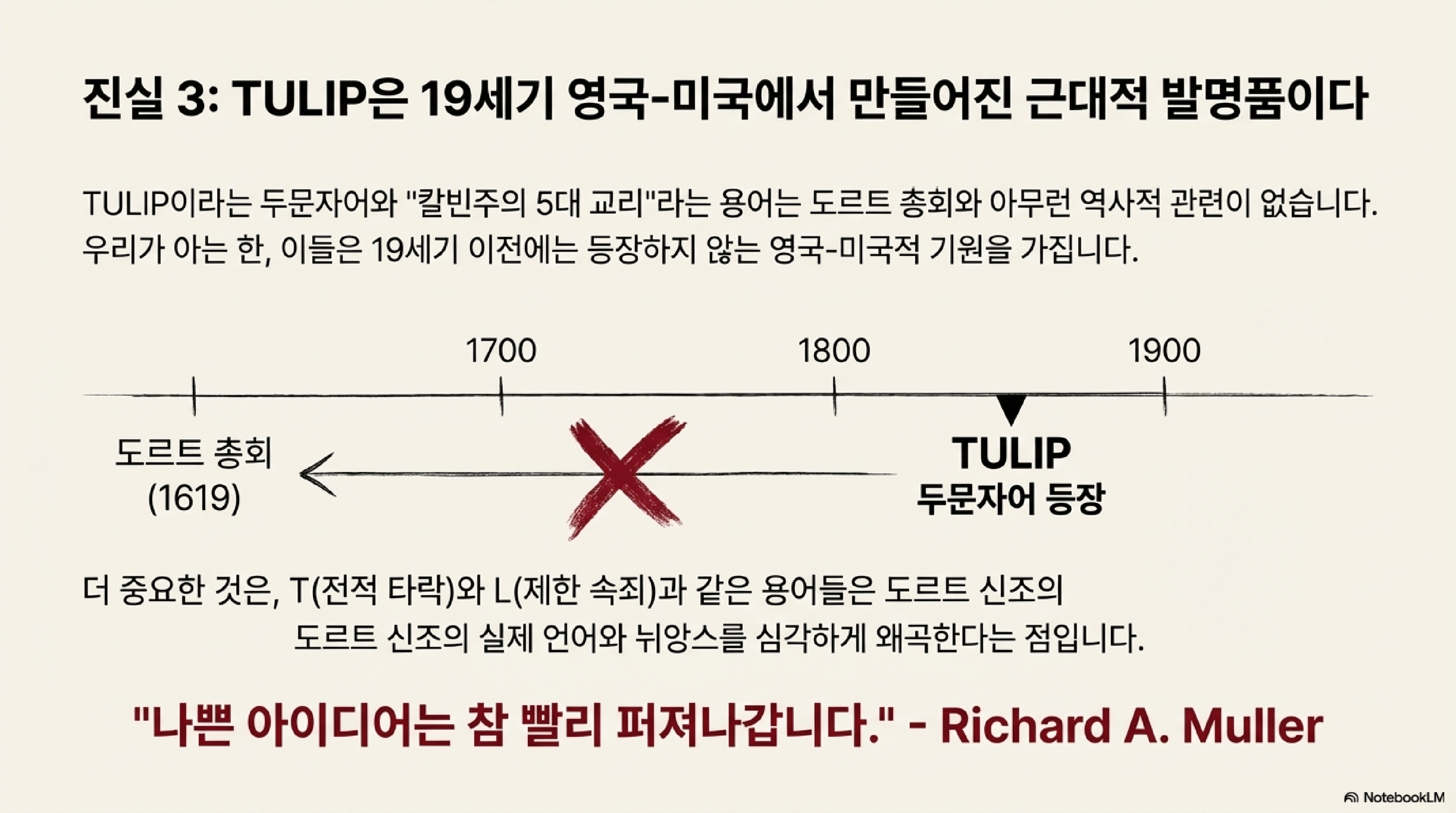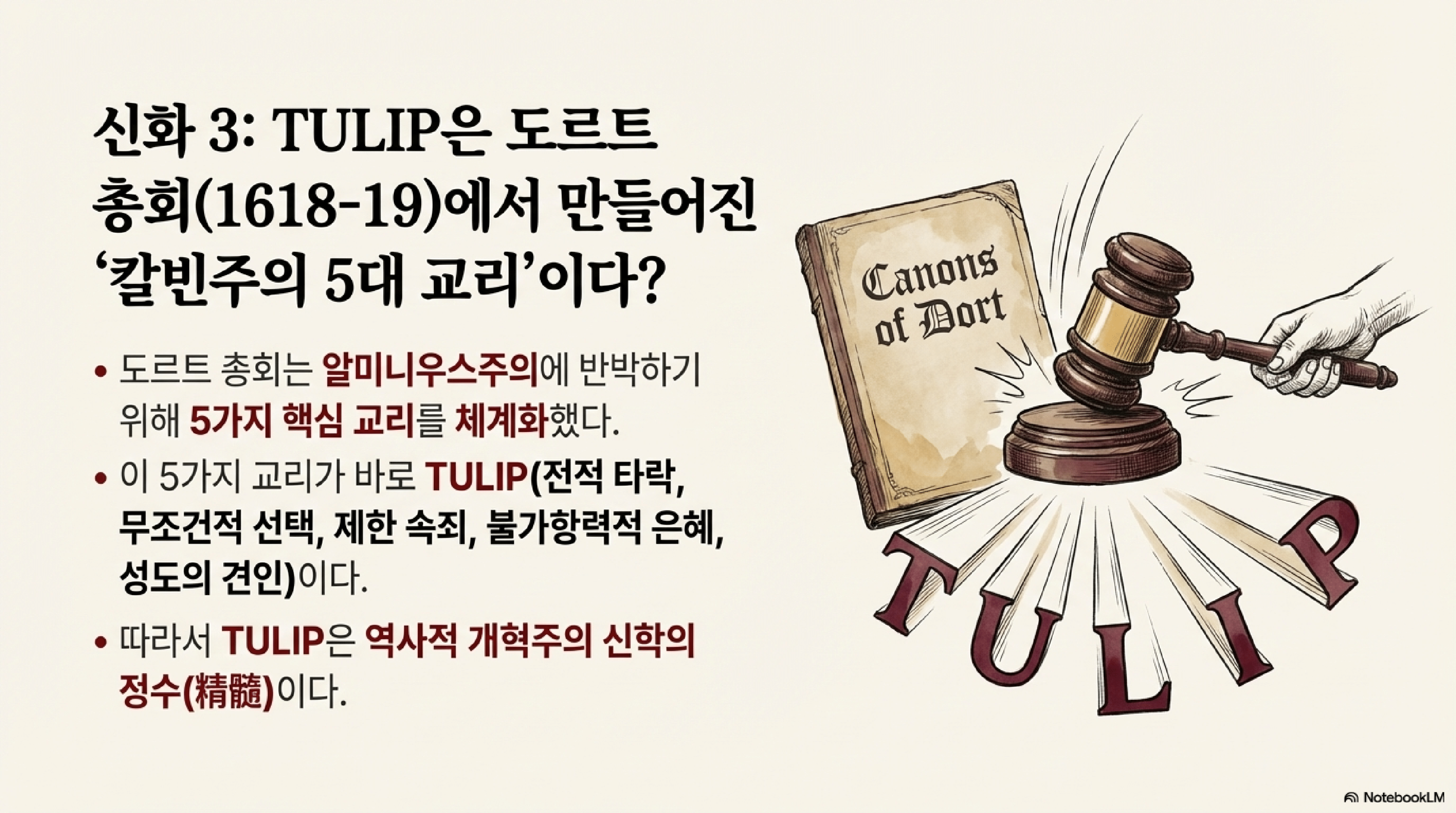 TULIP(튤립) 약어는 개혁주의 신학의 대명사처럼 여겨지지만, 이는 역사적 사실과 거리가 멀다.