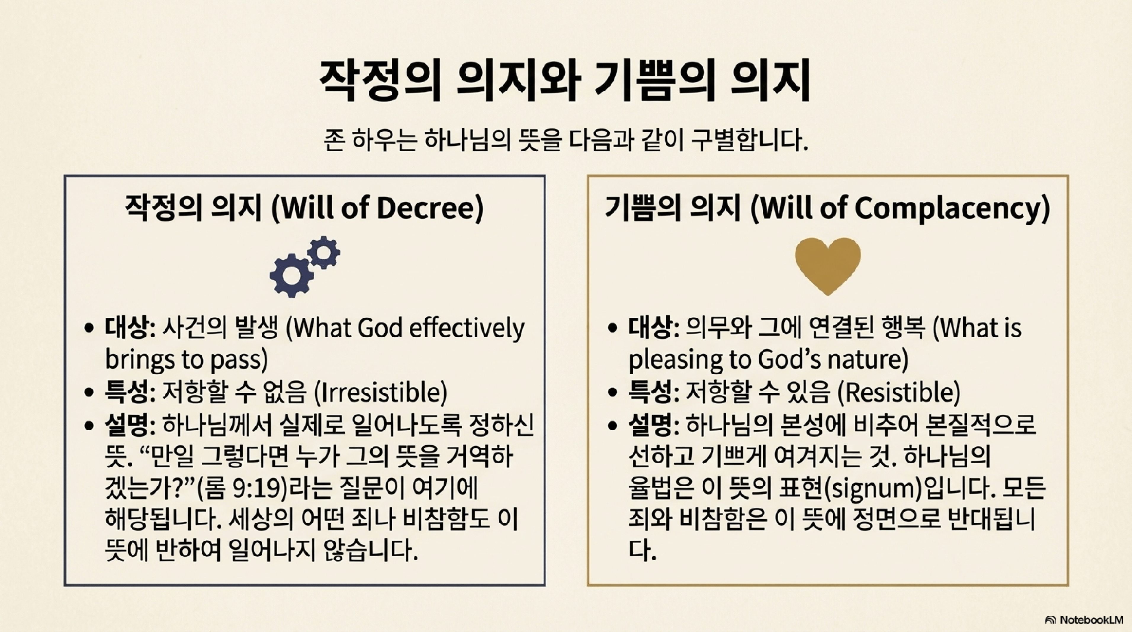 하우는 하나님의 의지를 두 가지로 명확히 구분한다.
