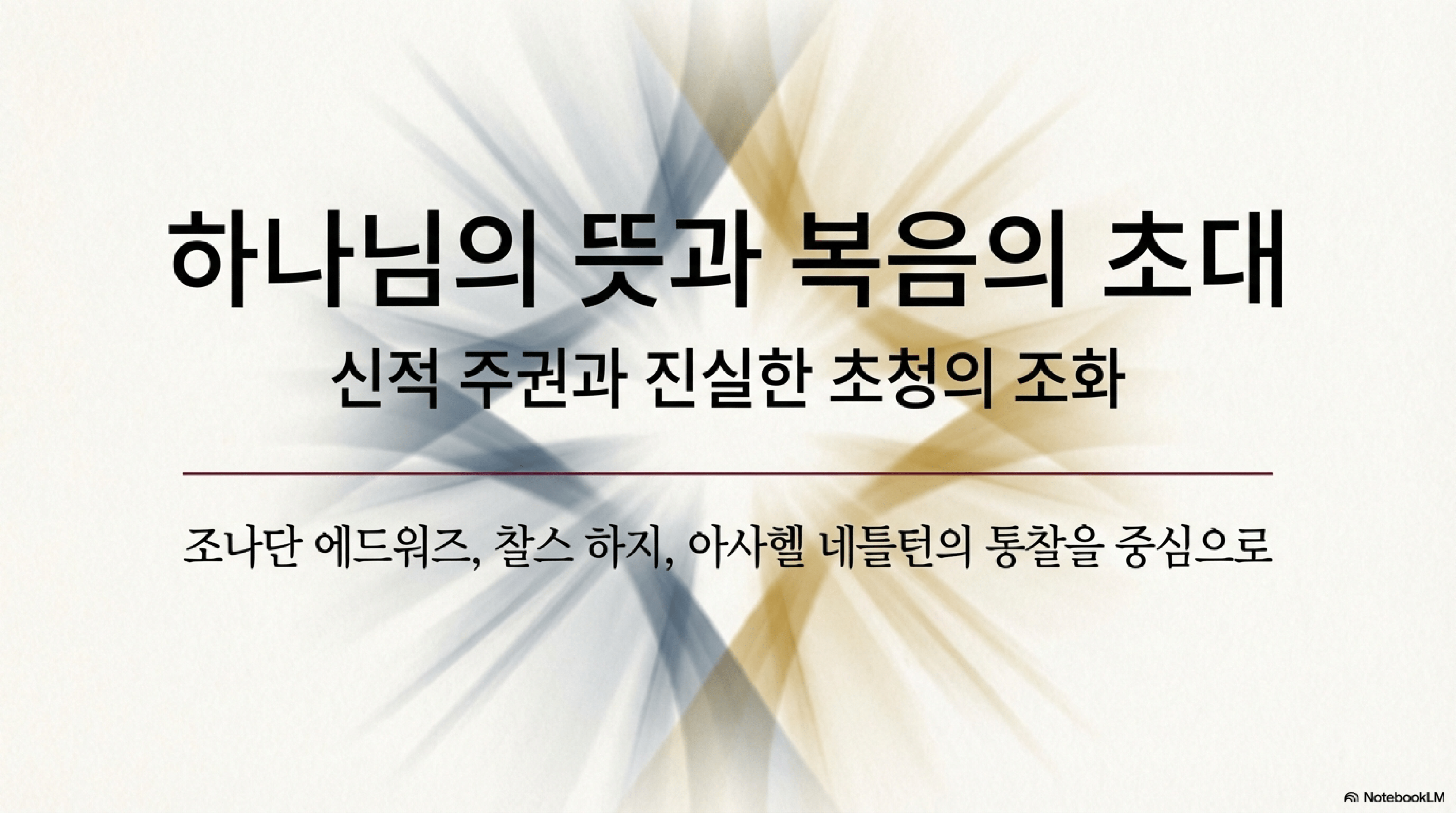 이번 포스팅은 조나단 에드워즈, 찰스 핫지, 아사헬 네틀턴의 저술을 통해 개혁주의 신학의 핵심 난제 중 하나인 하나님의 주권적 작정과 모든 사람을 향한 진실한 복음 제시 사이의 관계를 탐구한다. 세 신학자는 공통적으로, 비록 하나님의 비밀스러운 작정(secret will)에 따라 어떤 이들은 구원받지 못할지라도, 하나님께서는 그의 계시된 뜻(revealed will)을 통해 복음을 듣는 모든 이들의 구원을 진정으로 바라시며 기뻐하신다는 점을 논증한다.- 조나단 에드워즈는 하나님의 '비밀의 뜻'(작정의 뜻)과 '계시된 뜻'(명령의 뜻)을 구별한다. 전자는 만물의 보편적 조화라는 더 큰 목적을 위한 것이며, 후자는 거룩함과 행복 자체에 대한 하나님의 본성적 기쁨을 표현한다. 복음 제시는 바로 이 계시된 뜻의 진실한 표현이다.