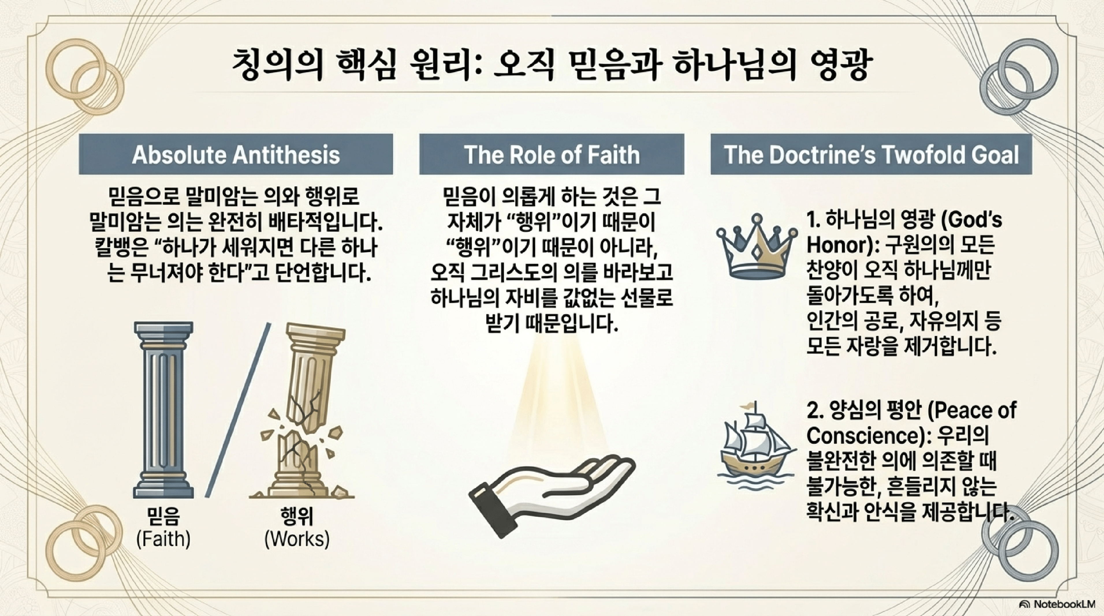 C. 칭의론의 두 가지 핵심: 하나님의 영광과 양심의 평화