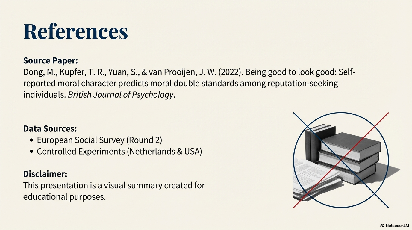 - 이중 잣대의 확인: 평판을 중시하는 소위 '도덕적' 개인들은 동일한 잘못에 대해 타인보다 자신에게 훨씬 관대한 기준을 적용했다.