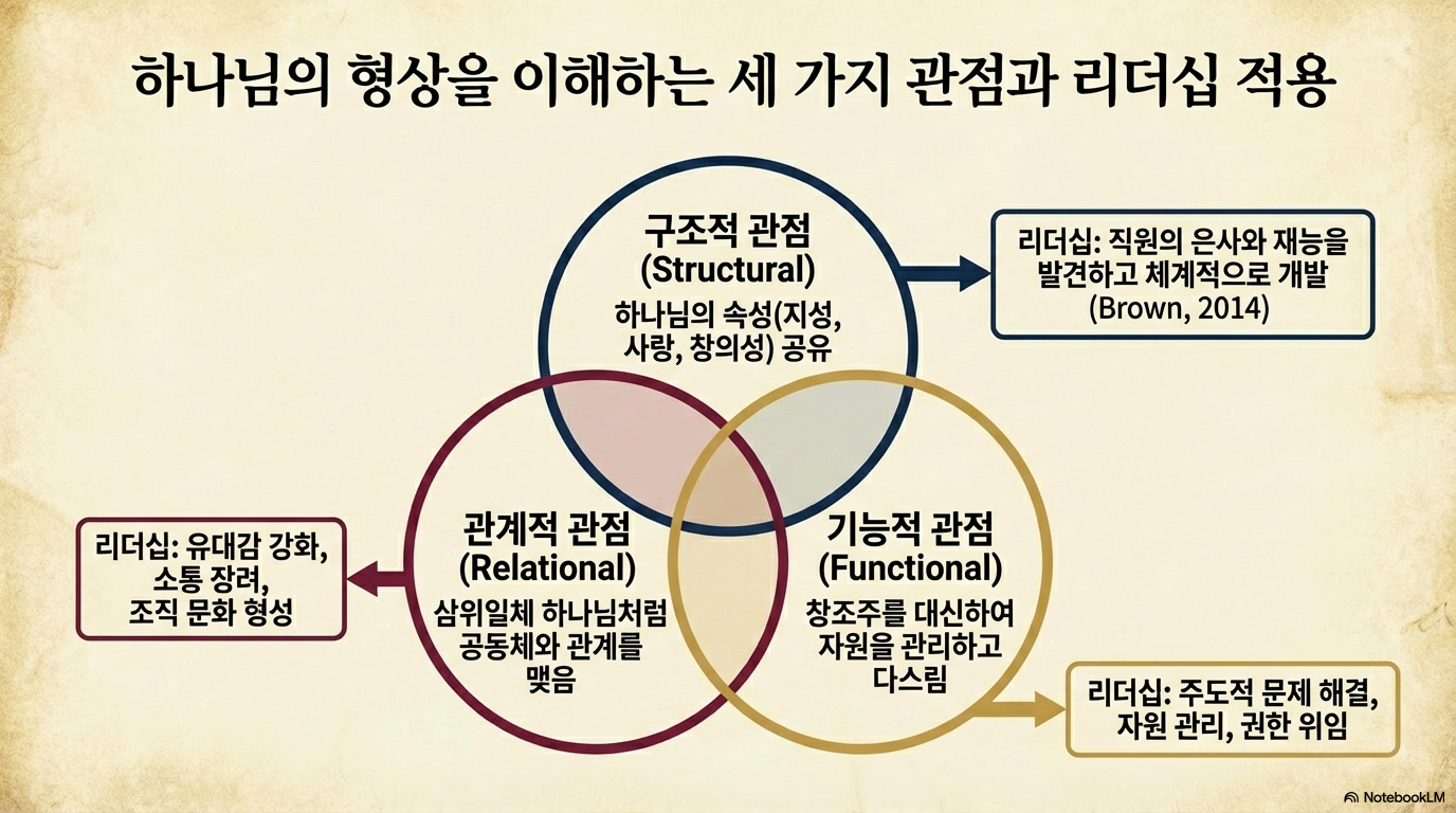 - 구조적 관점 (Structural Perspective): 지성, 도덕성, 사랑, 공의와 같은 하나님의 속성을 공유한다는 점에 집중한다.