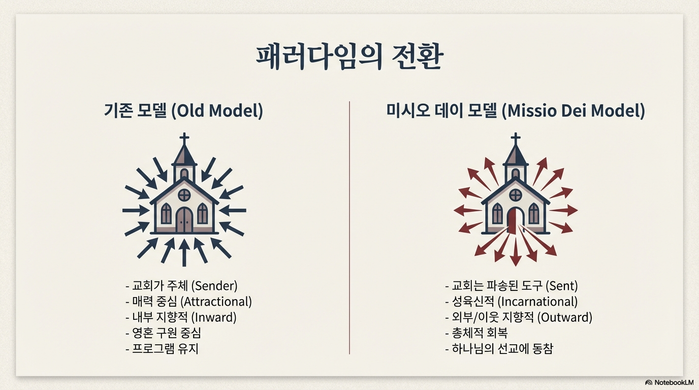- 성육신적 모델: 예수께서 인간의 몸을 입으셨듯, 교회는 지역 사회의 삶 속으로 깊이 침투해야 한다.