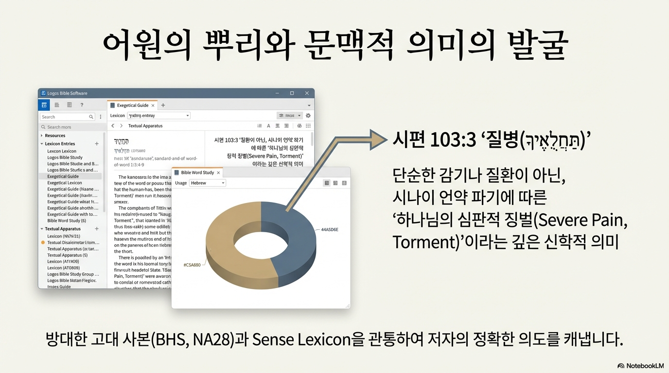 [3단계] Exegete (주해): 원어 데이터 분석Logos의 도구를 활용하여 단어, 구, 문장 수준에서 본문의 의미를 심층 분석한다.
